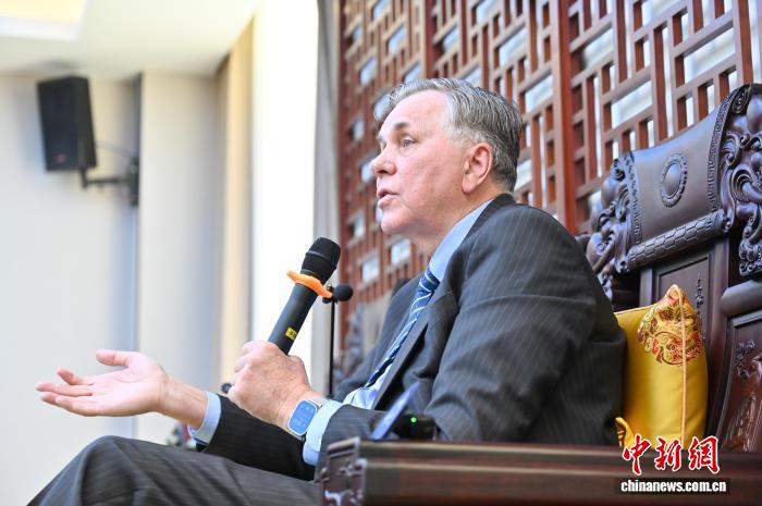 图为巴里·马歇我担当记者采访。中新社记者 旧楚白 摄